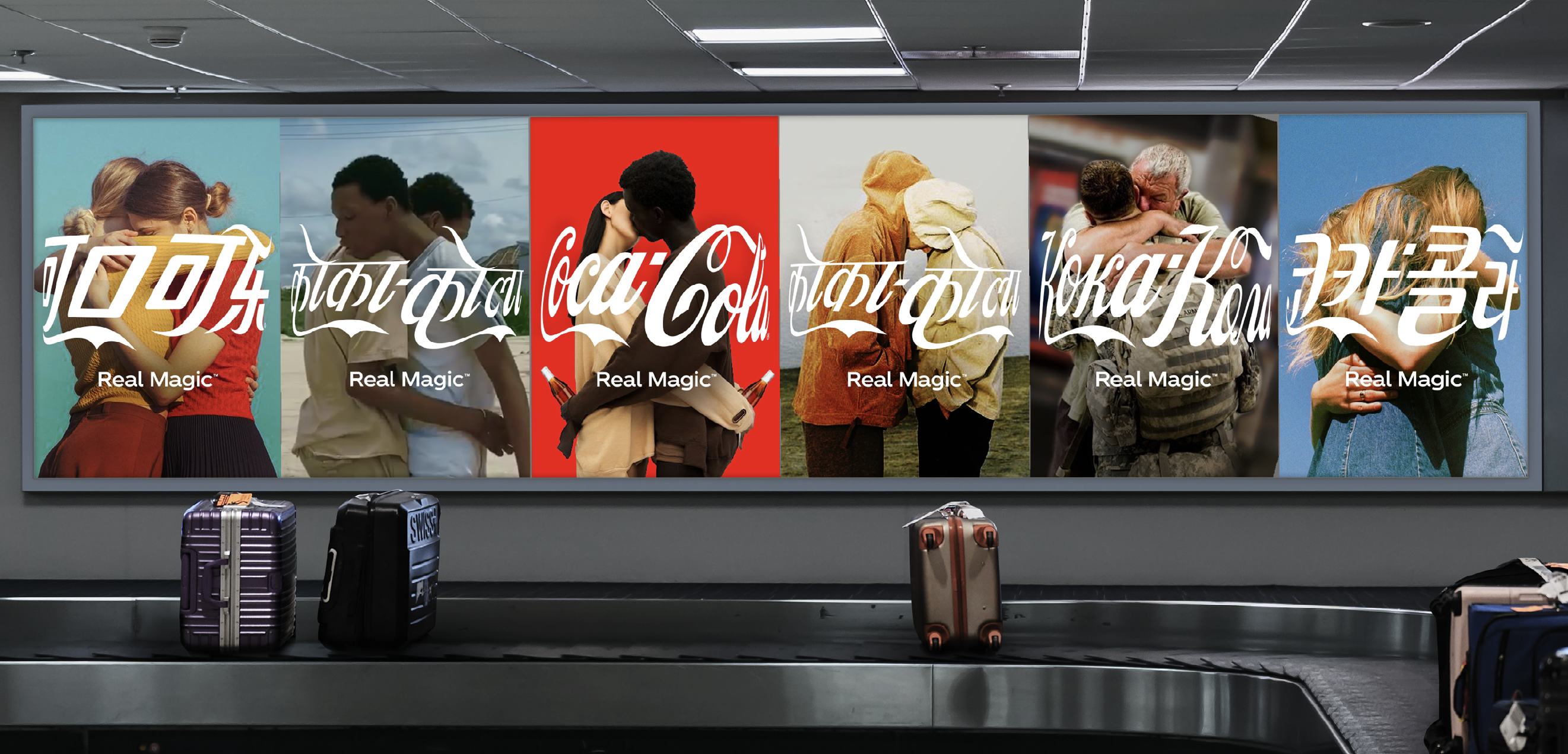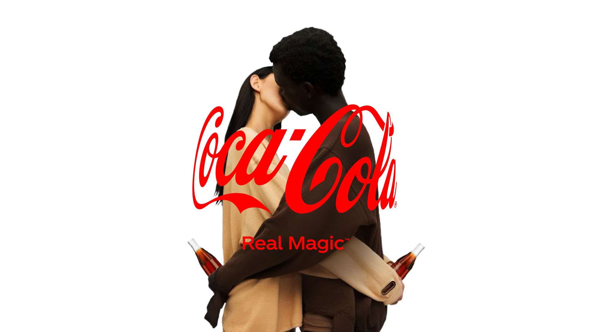 A global symbol of togetherness for the worlds most iconic brand. The logo – as it appears wrapped around the iconic coke bottle, is used to ‘hug’ an endless variety of content. A simple, yet powerful design solution launched as part of Coca-Cola’s new ‘Real Magic’ global campaign platform. More informatoin here and here.